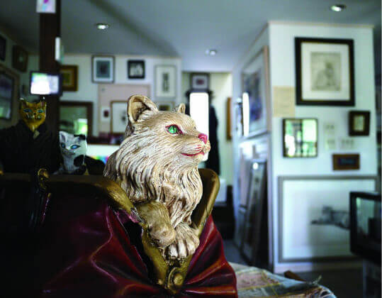 特に港町では、猫たちは生活の一部として密接な存在となり、私たちの日常生活、特にアートの世界と深く結びつきました。多くの文化人から愛され、文学、絵画、彫刻など多様な表現の源となった猫たちは、現在でも愛されるペットとして私たち人間と深い関係を保ち続けております。しかしながら現代では飼育放棄や乱繁殖による野良猫の増加が社会問題となっており、適切な飼育知識と責任感が求められます。