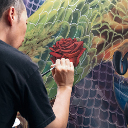 制作期間中、日々進化する壁画アートを是非お楽しみください。