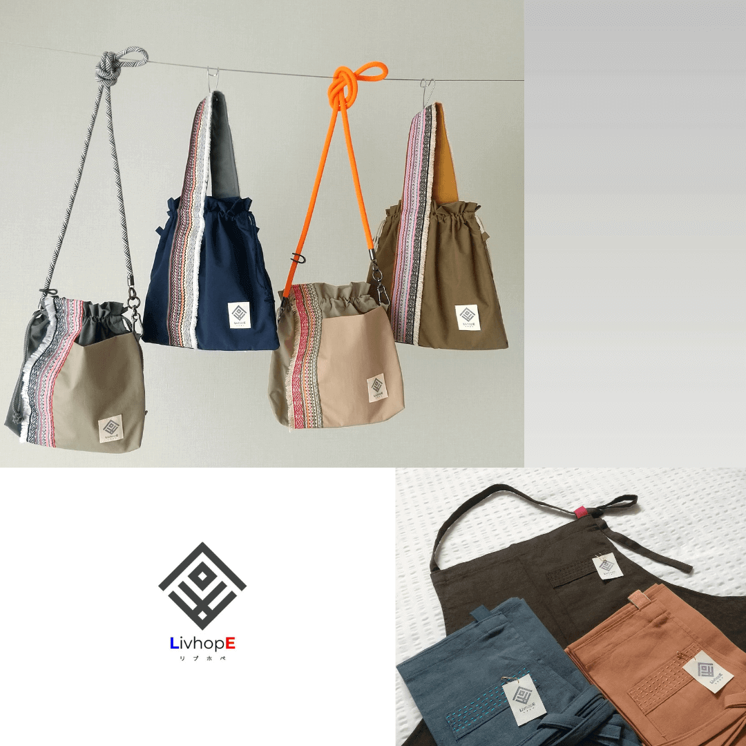 本体は撥水性のあるファブリックバッグ、ハーフリネンのエプロンを販売いたします。