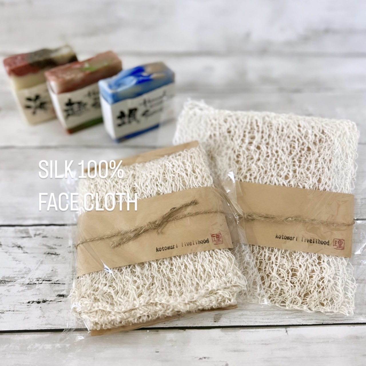 赤ちゃんのお肌にもやさしい、シルク100%の洗顔クロスや、ターバンや帽子などのニット小物を販売します。