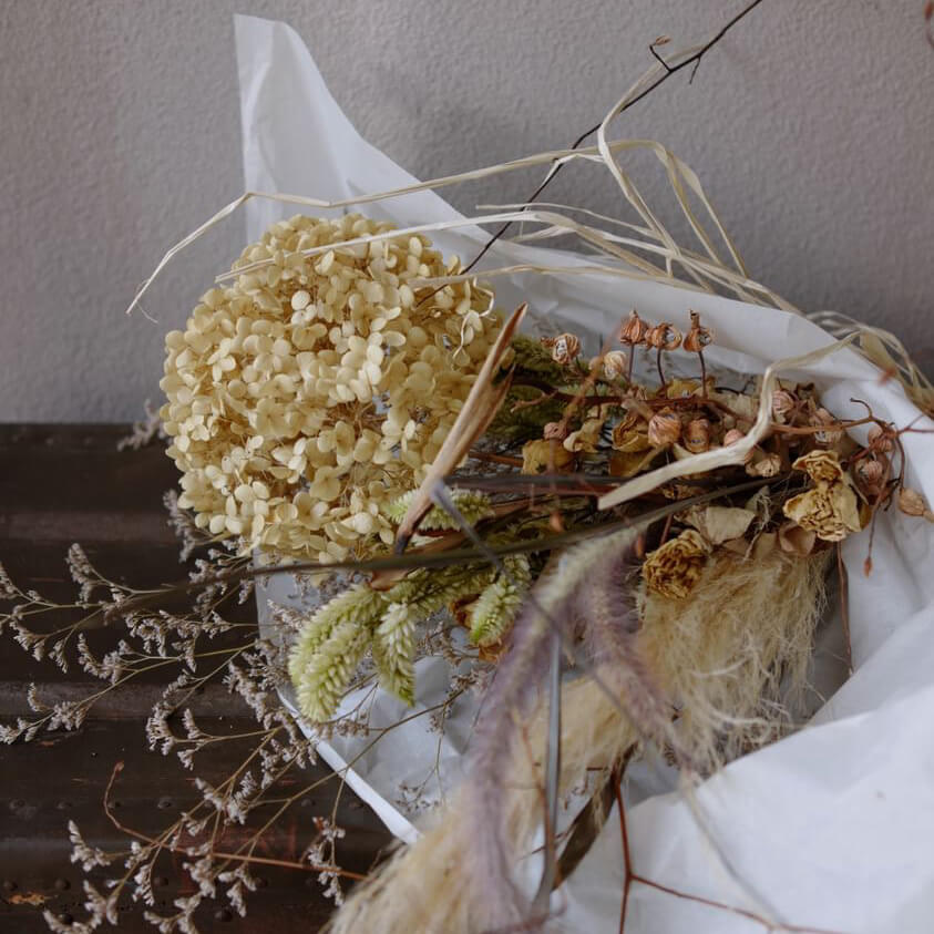 ロスフラワーから製作したドライフラワーを使って自由に束ねましょう!花は、枯れてもなお美しい姿を見せてくれます。色褪せたドライフラワーも姿・形は美しいフォルムのまま。お好きな花材を選んで、たったひとつだけのドライフラワースワッグを作りましょう!