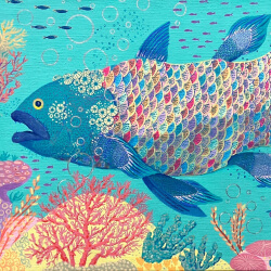 その経験で得た視点や感性で、日本画、イラストを制作。