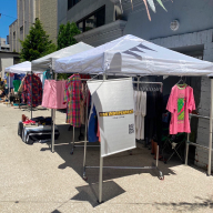 選んでいただいた古着に、選んでいただいたシルクスクリーンのデザインをその場でプリントし、販売いたします。